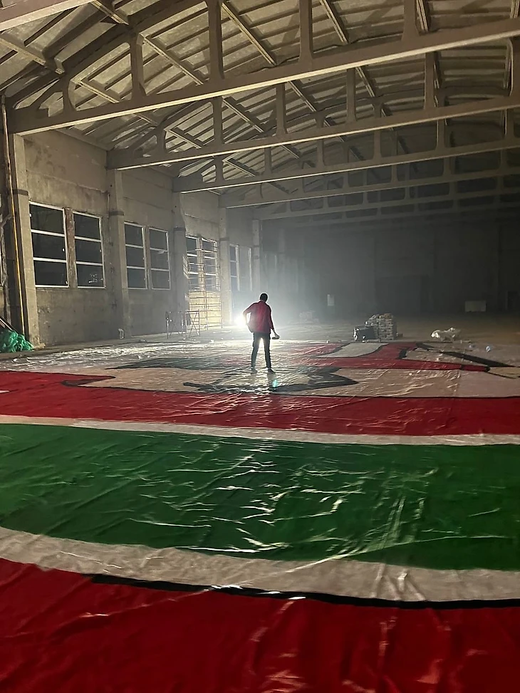 С учётом активной работы и помощи болельщиков, которые вложили своё личное время в этот перфоманс, уже за несколько дней до матча основные части – фоновое полотно и Фанат с флагом – были готовы.