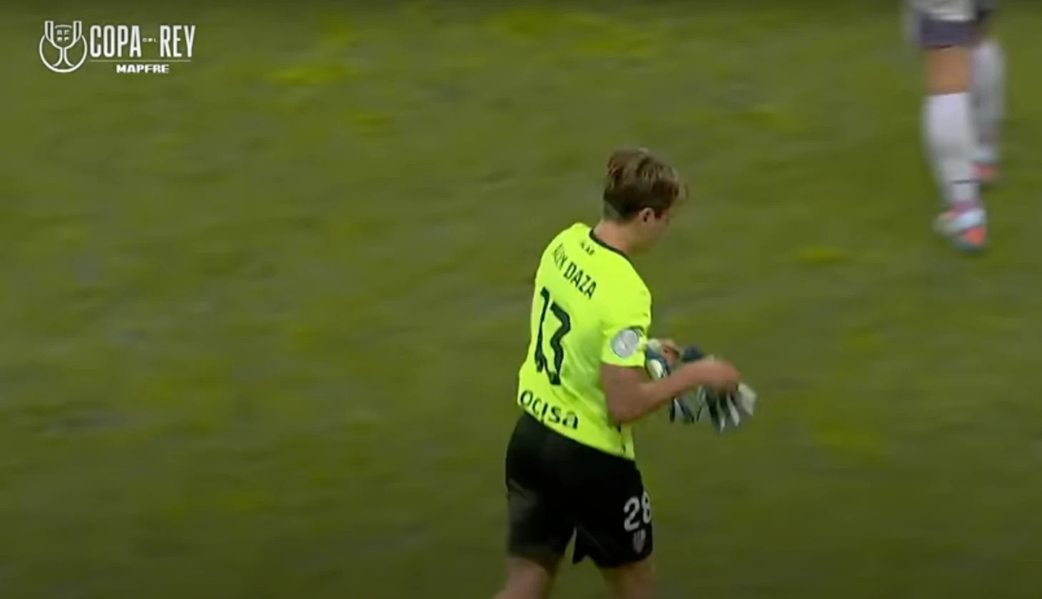 В самом начале дополнительного времени основной голкипер «Логроньеса» Кике Ройо серьезно травмировался (получил удар в голову), замен уже не было. Пришлось ставить в ворота полевого, решился 19-летний защитник Поль Арнау. Выскочил в футболке резервного вратаря.