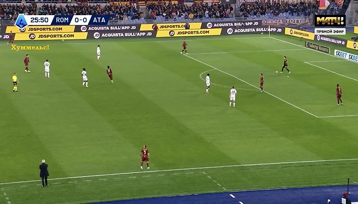 «Рома» отзеркалила персоналку бергамасков. Структура римлян без мяча была похоже на гибрид 3-5-2 и 3-4-2-1. Ману Коне был универсальным солдатом. Без мяча поднимался к паре нападения, персонально играя по Коссуну. При владении был частью тройки в центре поля – Коне-Паредес-Кристанте. Прямо сейчас, Коне одна из самых надежных деталей в скрипучей ходовой части «Ромы».
