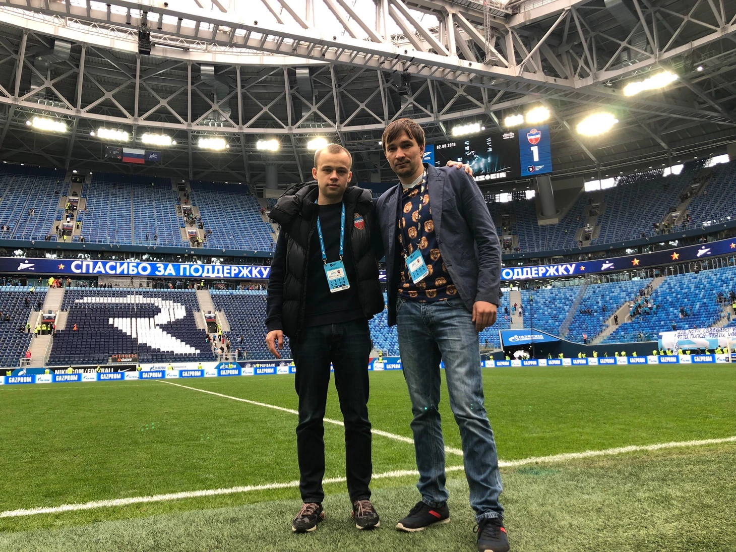 Но здесь, опять же, выбирать сложнее, потому что творческую историю мы начинали с Андреем, тот же Саша Харитонов, из-за того, что он был таким неравнодушным к родной команде, наверное, он один из первых, кто там начал лоббировать этот запуск «Енисей ТВ», чтобы хоть какие-то намеки появились у команды на клубное телевидение. И он там даже выступал соведущим в интервью-форматах. То есть был тоже одним из директоров клуба, а параллельно и футболистом. Я бы к сравнению добавил Вадика [Веселкова], потому что тоже он очень много помогал, много снимал, много монтировал. И вот они с Андреем прям очень сильно были важными членами нашей медиа команды.