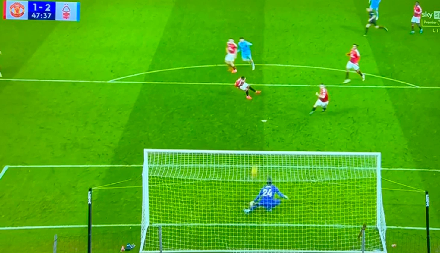 После перерыва «Ноттингем» снова повел – и это вратарский косяк Андре Онана. Непривычно, что он привозит, но тут сыграл жутко и почему-то не отбил удар Моргана Гиббса-Уайта. Хотя мяч летел в него и лишь чуть-чуть изменил траекторию.