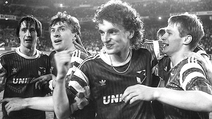 Тогда еще фанатской дружбы между «Црвеной Звездой» и «Спартаком» еще не существовало, но было бы очень символично, если 2 красно-белых клуба встретились в финале главного клубного турнира Европы. Но для этого им надо было одолеть соперников, которых все эксперты как раз ждали в финале – сербам нужно было пройти «Баварию», а спартаковцам – «Марсель». И если «Спартак» сдулся еще в первой игре, когда в Москве проиграл со счетом 1:3, то «Црвена Звезда» неожиданно привезла из Мюнхена минимальную победу. В ответной встрече на «Маракане» немцы смогли восстановить равновесие, и поединок уже шел к послематчевой серии пенальти, пока на последней минуте Клаус Аугенталер крайне неудачно не срезал мяч в сторону своих ворот, а голкипер «Баврии» Раймонд Ауман не исполнил Геогри Шелию в моменте с голом Игоря Лещука, не сумев поймать мяч, опускающийся прямо в руки.