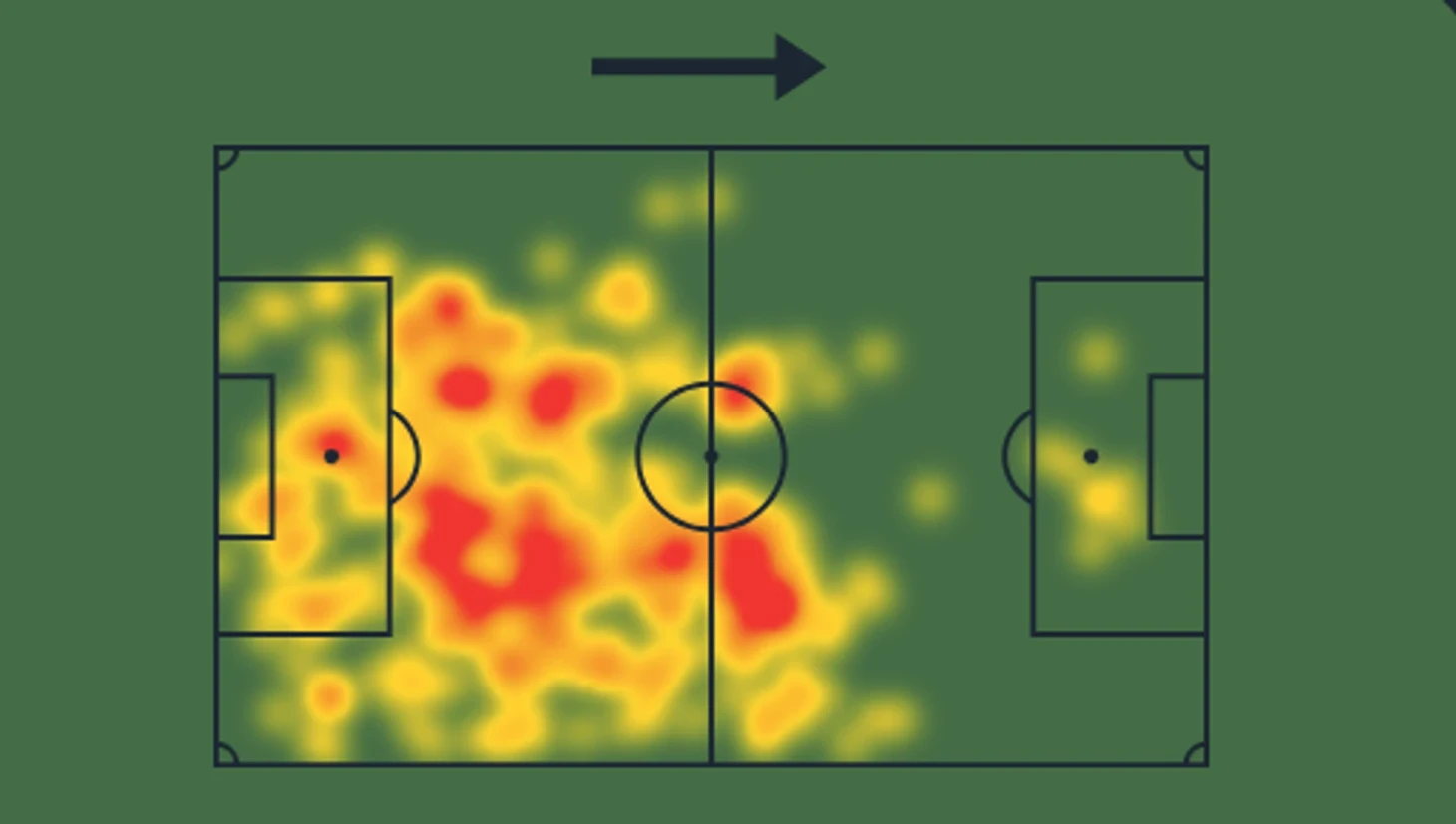 Тепловая карта удивляла еще больше. Носился будто молодой!