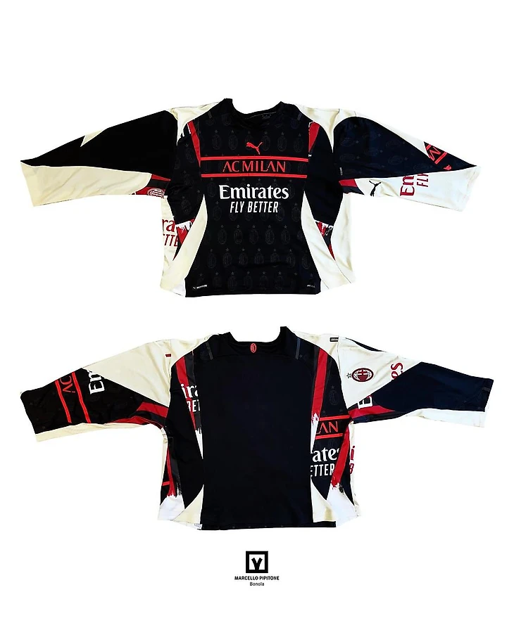 Миланский дизайнер Марчелло Пипитоне продемонстрировал апсайкл-лонгсливы, сделанные из джерси «Милана», «Интера», «Наполи», «Юве», «Ромы» и «Венеции». Их можно приобрести за 250 евро.
