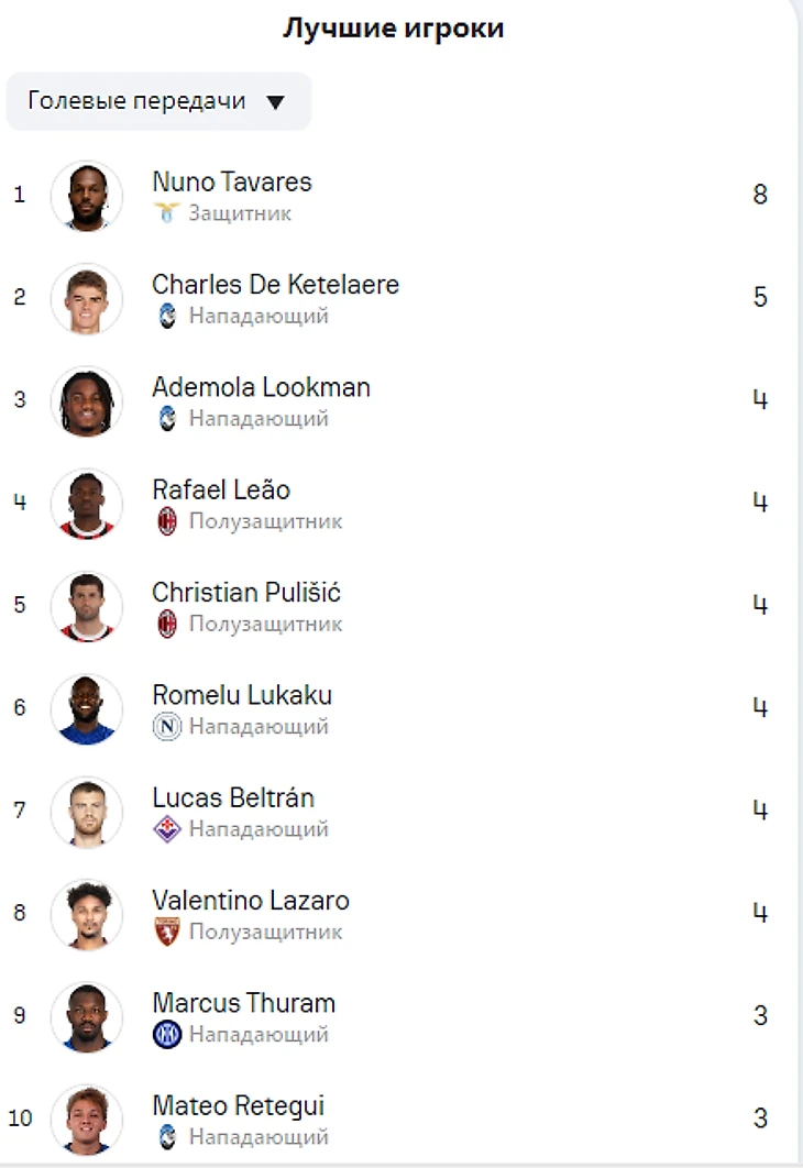 Список лучших ассистентов: