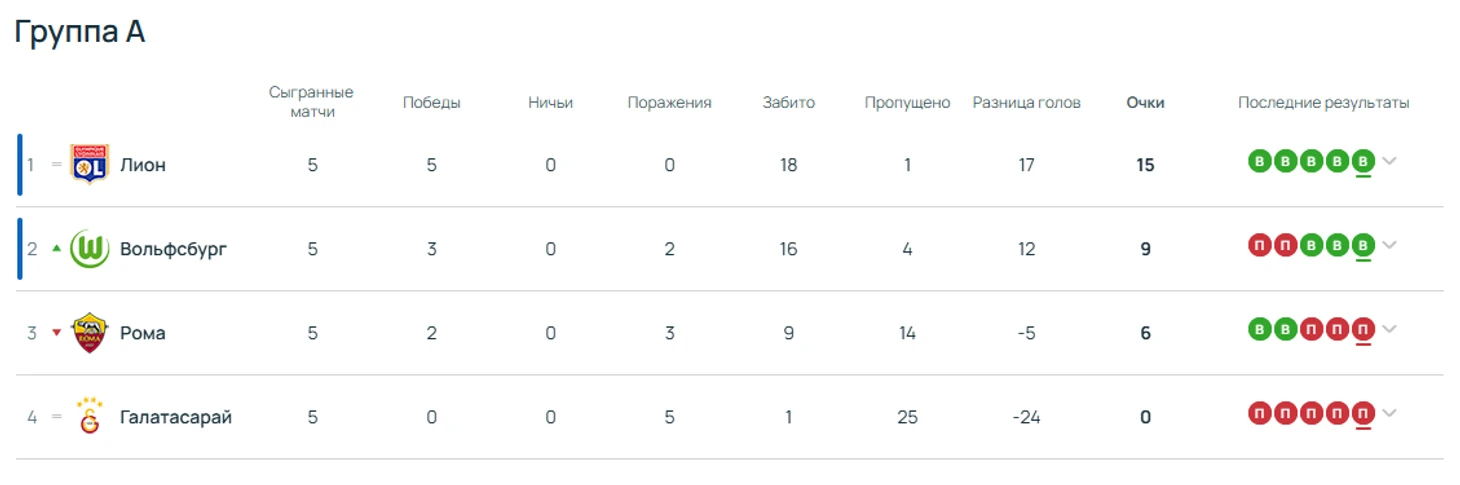 Немецкий клуб уже не сможет побороться за первое место, так как отстает от «Лиона» на 6 очков. А «Рома» не может преодолеть барьер группового этапа второй сезон подряд.