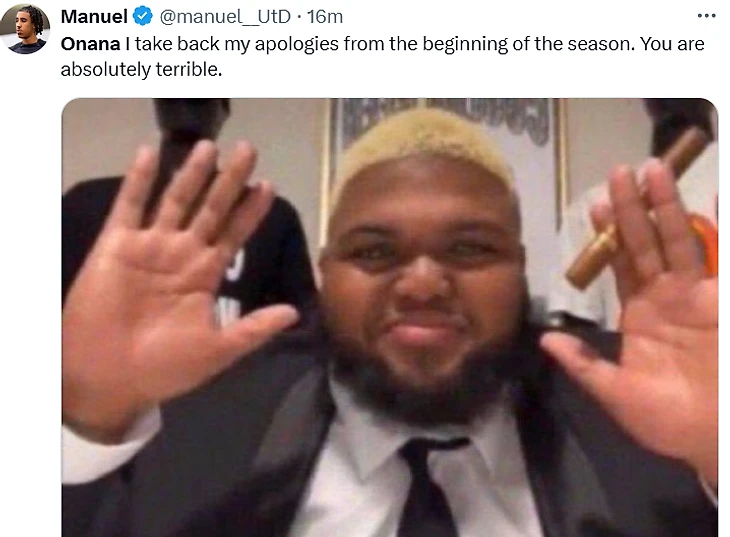 💭 «Онана, я беру назад свои извинения перед тобой в начале сезона. Ты просто ужасен».