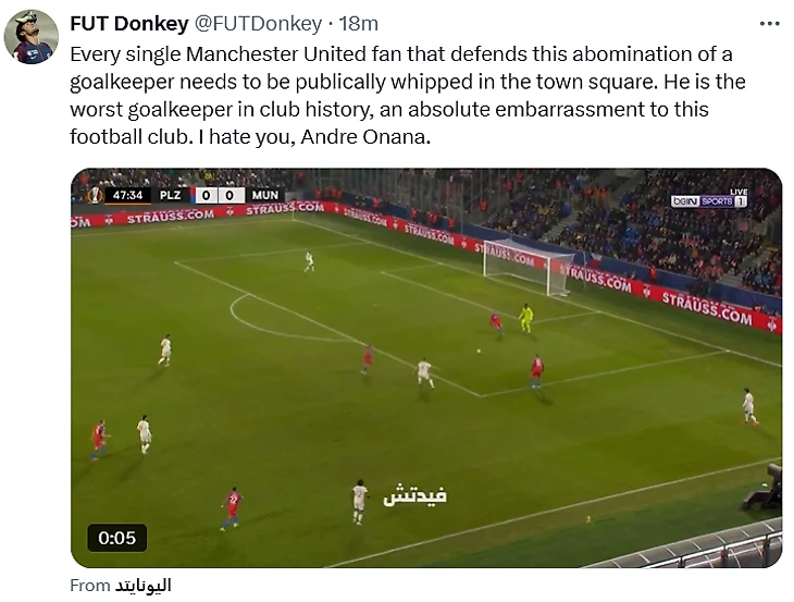 💭 «Каждый фанат «Манчестер Юнайтед», который защищает этого мерзкого вратаря, должен быть публично выпорот на городской площади. Он худший вратарь в истории клуба, абсолютный позор для этого футбольного клуба. Я ненавижу тебя, Андре Онана».