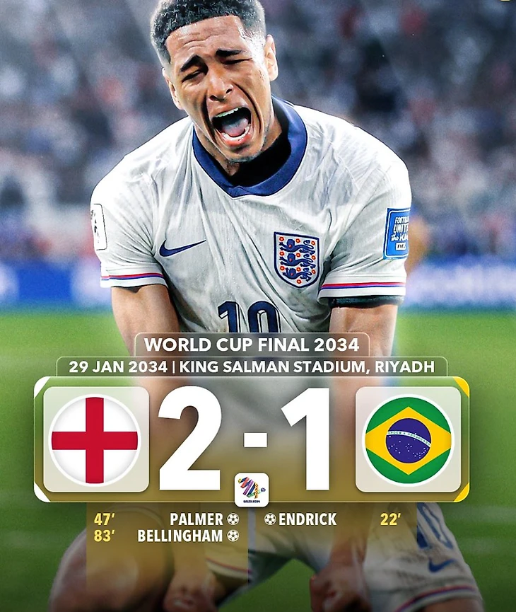 3️⃣ Англия 2-1 Бразилия – 2034 год, стадион имени Короля Салмана, Саудовская Аравия