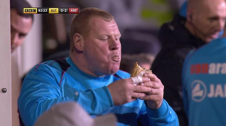 Едем дальше. В 2017 году 125-киллограмовый вратарь «Саттон Юнайтед» Уэйн Шоу был дисквалифицирован на два месяца и оштрафован на 375 фунтов – все из-за поедания пирога во время кубковой встречи с «Арсеналом».