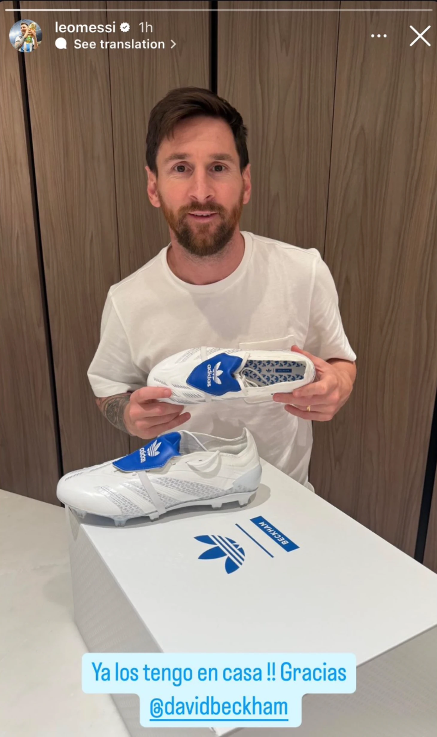 Лионель Месси получил уникальный подарок от Дэвида Бекхэма, одного из владельцев «Интер Майами». Англичанин отправил аргнетинцу именные бутсы из своей эксклюзивной коллекции, созданной в сотрудничестве с Adidas.