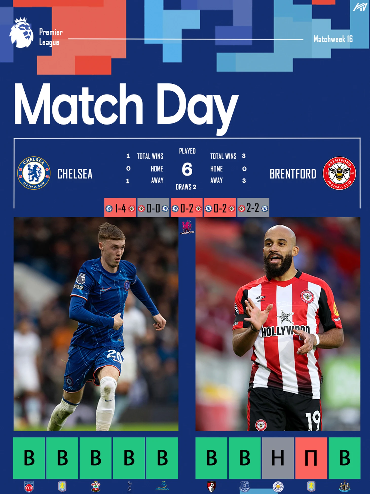 🔵 Мой прогноз: Слушайте, «Брентфорд» постоянно приносит «Челси» поражания на «Бридже». Пора этому положить конец, тем более это всё-таки выездная игра для «Пчёл». «Челси» показал, что если он в форме и в кондициях, то он может обыгрывать команды по всем статьям. Вспомните только недавнюю домашнюю игру против «Виллы».