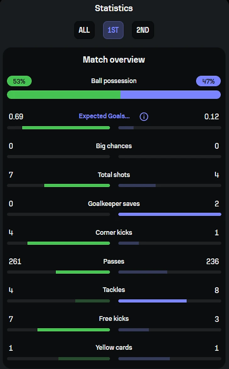 Классические, достаточно компактные 4-3-3 с низким Гюндоганом, которые впоследствии начали претерпевать непонятные метаморфозы, но об этом, опять же, позже. Настало время поговорить и про «Юнайтед» на старте встречи, уже после первого столь тяжелого отрезка. И первый аспект, который надо учесть – «манкунианцы» к концу тайма почти выровняли владение, хотя на старте оно казалось совсем катастрофическим. И сделали они это крайне незамысловатым способом: просто перекатывали мяч по своей половине поля, и уже к концу тайма 3 из 5 игроков от обеих команд по количеству передач составляли футболисты «Юнайтед», конечно же, исключительно защитники: Де Лигт, Лисандро и Мазрауи (а из всего топа был лишь 1 не защитник – Гюндоган и он оказался на 5 строчке). И это еще одна причина, по которой в первые 20 минут не произошло ни одного удара – команды просто не хотели рисковать, вопреки всем прогнозам. Еще из интересного у «Юнайтед» – очень понравилась роль Бруну как человека, абсолютно без единой позиции, ведь во всех предыдущих матчах при Амориме, португалец был либо строго в центре поля ( в играх с «Арсеналом», «Буде-Глимтом» и «Викторией), либо акцентированной десяткой ( «Ипсвич», «Ноттингем», «Эвертон») а тут Бруну где только не побывал за те 10 минут, которые он играл чисто в этой роли: начиная с позиции самого активного и прессингующего игрока «МЮ» наряду с Хойлундом: