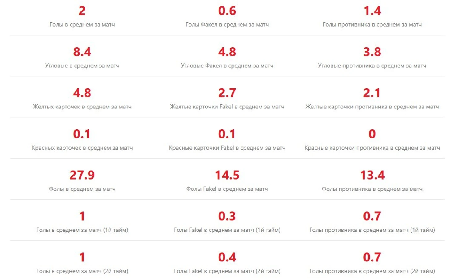 Общая статистика говорит о том, что «Факел», наряду с «Динамо» из Махачкалы, является самой малозабивающей командой лиги. В матчах Факела в среднем забивают всего два мяча, команда низовая, буквально созданная, чтобы дарить радость любителям ставок. Факел чуть чаще забивал во втором тайме, но пропускал в обоих таймах одинаковое количество мячей. Игроки по-прежнему много фолят, однако прежних безумных цифр в 50 фолов за игру уже нет.