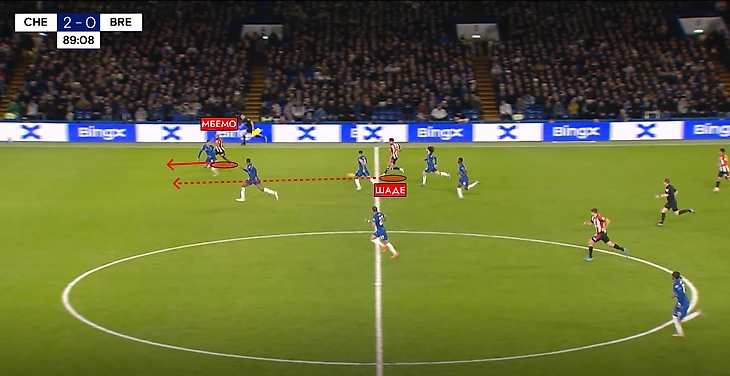 По логике, такие ярые заходы «Брентфорда» рано или поздно должны были конвертироваться в забитый гол. На 86-й минуте Мбемо все-таки отличился. Опасная атака снова пришла после удачной игры в отборе и на подборе. Шаде смог протащить мяч со своей штрафной до центра поля, отдав голевую передачу на Мбемо, который смог убежать сначала от Колвилла, а потом и от Тосина.