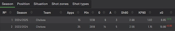 Однако в этом сезоне результативность и реализация резко улучшились. Теперь Николас Джексон больше не тот игрок-мем, а также вошел в элитный пул форвардов «Челси».