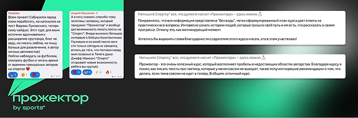 Не все авторы Спортса’’ участвовали в подготовке курса, но в личных разговорах мы слышим примерно одну мысль: каждый из тех, чьи тексты вы видите на главной, был бы рад такому курсу на старте карьеры.