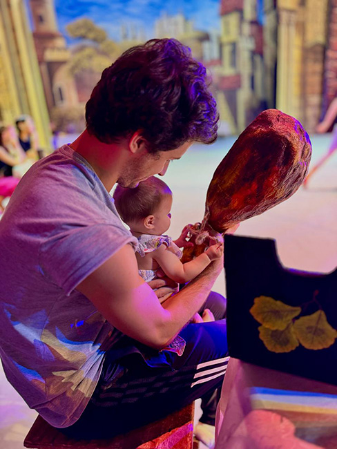 Это балет «Дон Кихот», я в роли Санчо Пансы. В первом и втором отделении у меня есть мизансцены, а потом я просто долго смотрю на ведущих солистов. Было время снять видео: у меня там такой момент, что я могу хоть заглядеться на кого-то, хоть уснуть.