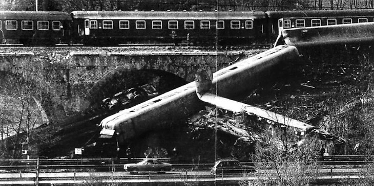 «Верона» находилась в первом вагоне. За полчаса до аварии всех пассажиров первого класса позвали на ланч в вагон-ресторан, располагавшийся пятым в очередности от «головы» состава. В момент аварии мотор и кузов рейса оказались смяты «в лепешку», а четыре первых вагона моментально упали с моста. Число погибших варьировалось от 48 до 56 человек, часть пропало без вести, а 76 человек получили травмы различной степени тяжести. Огромной удачей оказался вызов в вагон-ресторан, поскольку там команда осталась невредимой — весь состав в количестве 16 человек успел выбраться из разрушенного поезда.