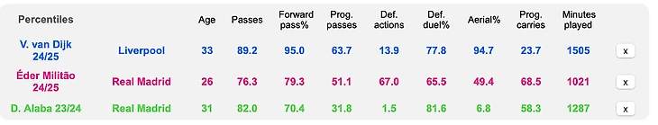 А вот в самостоятельном продвижении мяча ван Дейк заметно уступает Милитао и Алабе, которые едва ли не в три раза чаще выдвигаются вперед. Но, правды ради, дело может быть в тактических особенностях «Ливерпуля» и мадридского «Реала».