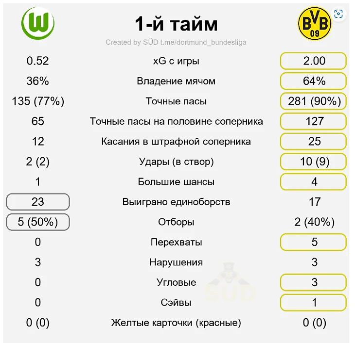 Первый тайм: практически безукоризненная игра Дортмунда и абсолютный провал «Вольфсбурга»: как идейный, так и ментальный