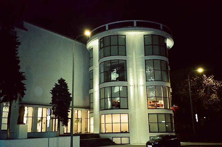 · Отреставрированный авангардный клуб фабрики «Буревестник» Константина Мельникова. Особенно красив с подсветкой вечером.