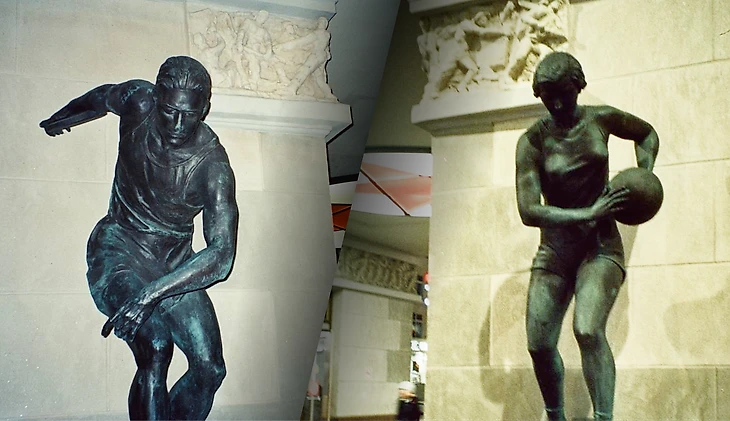 · Не отходя от транспортной тематики. Скульптуры «Волейболистки» и «Дискометателя» украшают вестибюль метро «Сокольники», тут тоже спорт! Скульптуры не раз мелькали на страницах журнала «Физкультура и спорт».