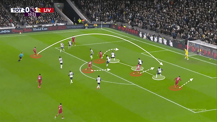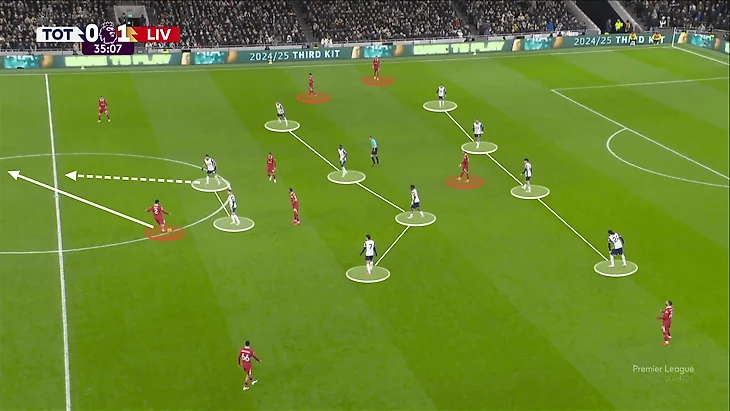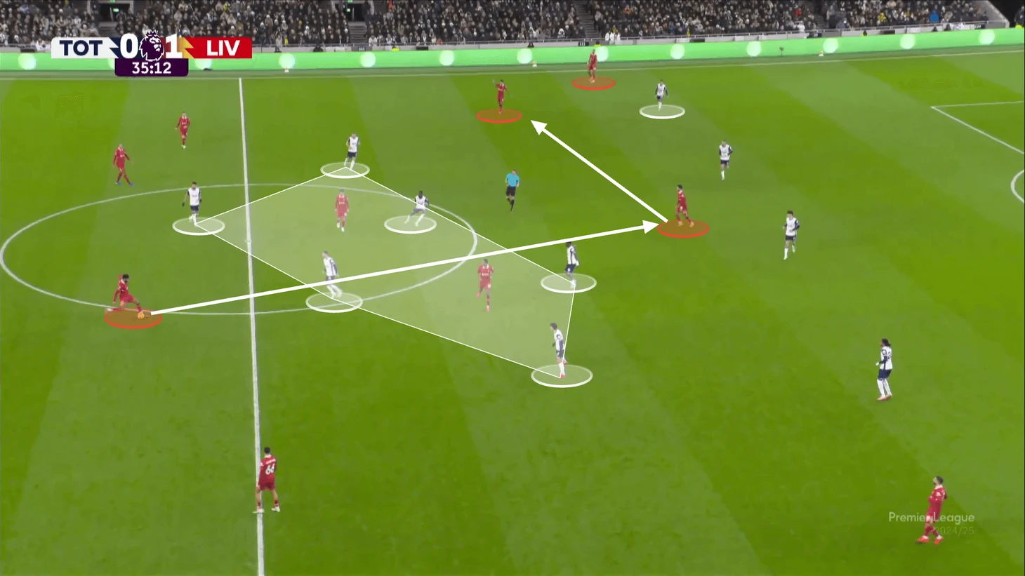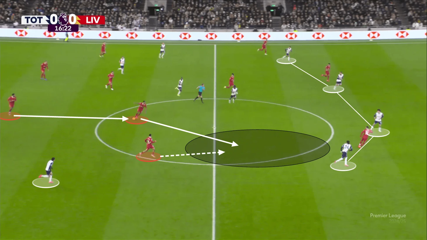 «Шестерки» «Ливерпуля» Алексис Мак Аллистер и Райан Гравенберх должны были больше рисковать в зачинании атак и принимать мяч под давлением, что и привело к первому голу «Тоттенхэма» (когда у Мак Аллистера отняли мяч), но в целом план сработал.