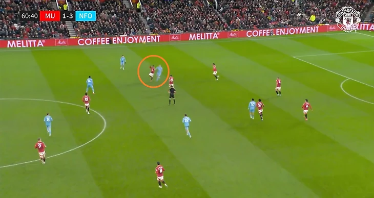 Спустя 4 года Аморим делает то же самое: выпускает Амада на позицию правой десятки, которая должна оперировать в узком пространстве перед и в штрафной.