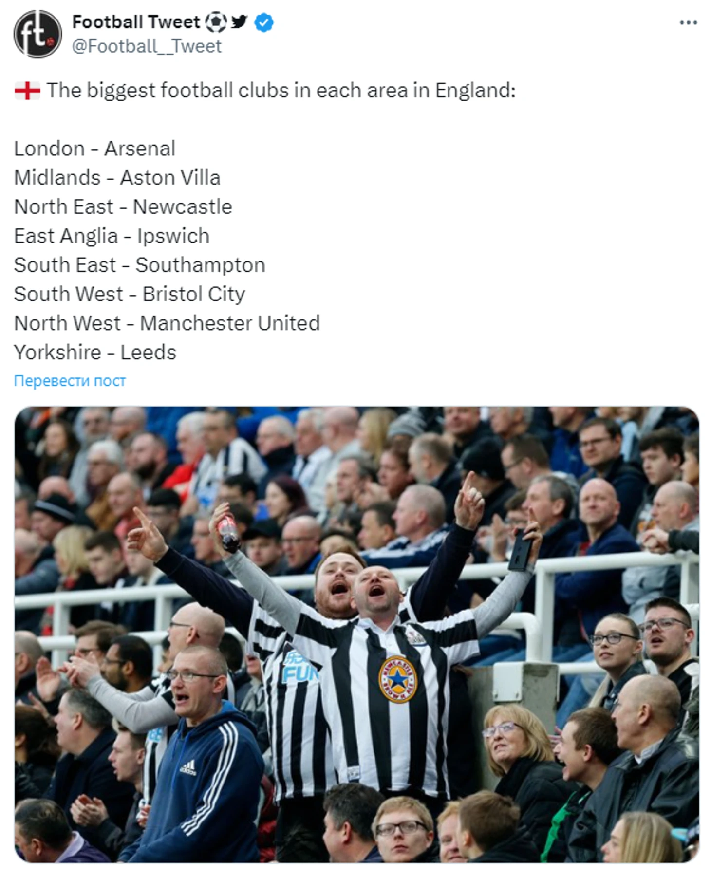 Известный аккаунт в социальной сети X Football Tweet решил удивить пользователей и составил список лучших клубов Англии в зависимости от того, где они располагаются. Получилось набрать более 500 тысяч просмотров и около 300 комментариев. Что же задело английских футбольных фанатов? Конечно же, выбор лондонского клуба. В столице Великобритании базируются минимум 17 крупных команд, а самым-самым стал... «Арсенал».