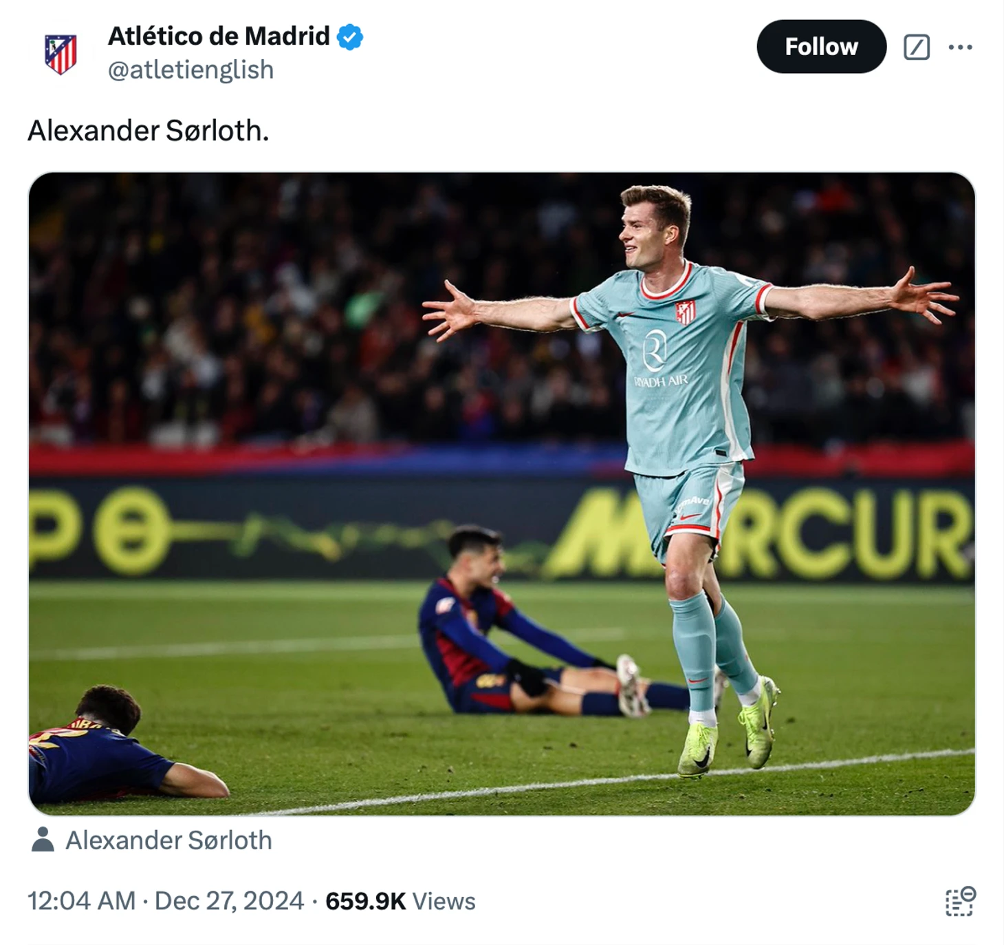 В «Атлетико» отреагировали лаконично – выложили настоящую фотографию и подписали автора гола.