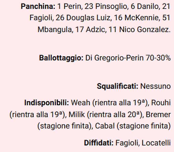 Состав боевой за исключением Нико, с состоянием здоровья которого не до конца всё понятно. Но он в заявку на матч включен.