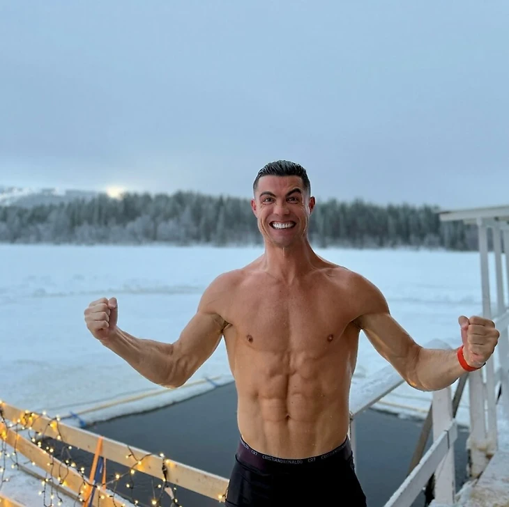 А совсем недавно португалец появился в Финляндии – приехал с семьей и позировал с голым торсом на заснеженном фоне. Закалился в проруби в -20.
