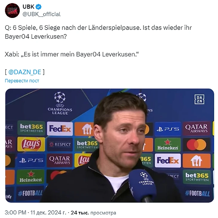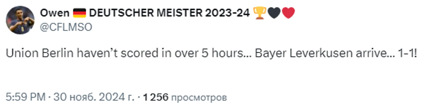 За весь матч гости в итоге не нанесли ни одного удара в створ и не наиграли даже на гол. Ну а «Байер» за терпение себя вознаградил – вновь вспомнив прозвище «Laterkusen», которое им в числе дали в прошлом сезоне, забив на последних минутах. Гол был непримечательным, из серии «затолкали», но лучшим в нем однозначно была реакция Алонсо. По ней, пожалуй, даже человек, ни разу в жизни не смотревший футбол, легко распознал бы в Хаби бывшего игрока, который сам еще недавно бегал по полю.
