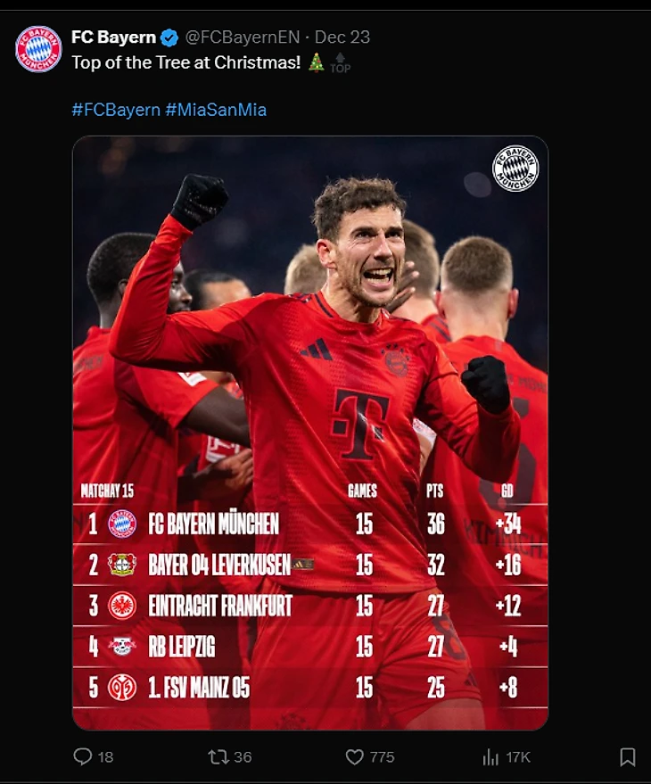 Трогательные слова, впечатлившие всех болельщиков «Байера» не меньше, чем зажигательный танец управляющего директора клуба Фернандо Карро в командной раздевалке. Уже за пару игр до Рождества вполне можно было говорить, что декабрь команде удался на славу, и о возвращении на правильный путь. Но и последние матчи сезона «Байер» приправил двумя победами, одолев для начала «Аугсбург»: Виртц и Фримпонг записали по голу себе уже в первом тайме, а во втором больше играли на удержание.