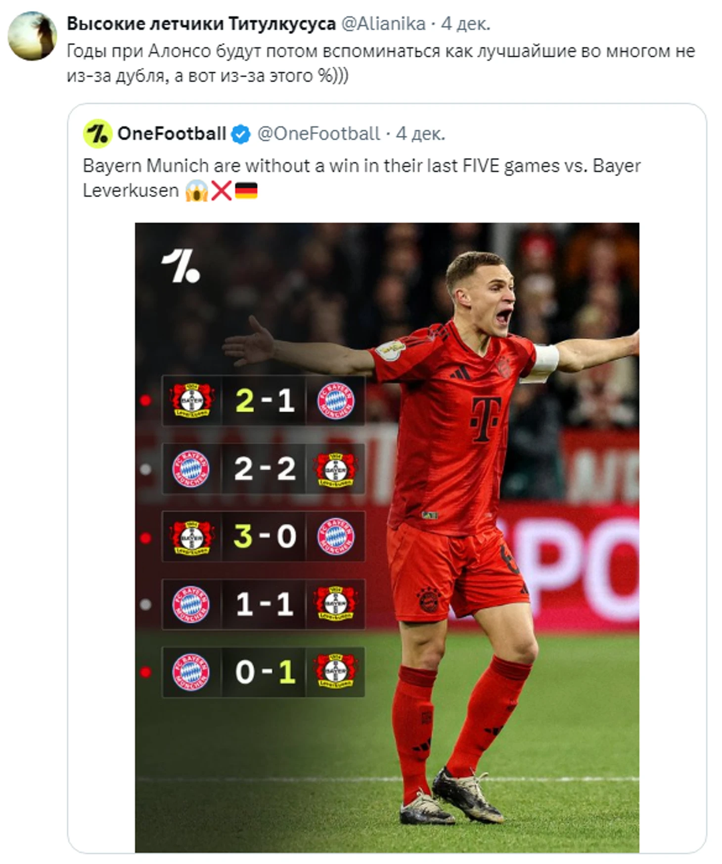 Для справки: «Байер» побеждал в Мюнхене всего четыре раза за всю свою 120-летнюю историю. И всегда только в рамках Бундеслиги. В Кубке «Байер» умудрился пройти «Баварию» лишь однажды – в 2009-м прошли «мюнхенцев», выиграв на «БайАрене». Звучала статистика безнадежно, но для Хаби Алонсо пораженческие настроения все еще остаются неведомы. И, кажется, именно ему, предначертано менять для «Байера» ход всей его привычной истории.