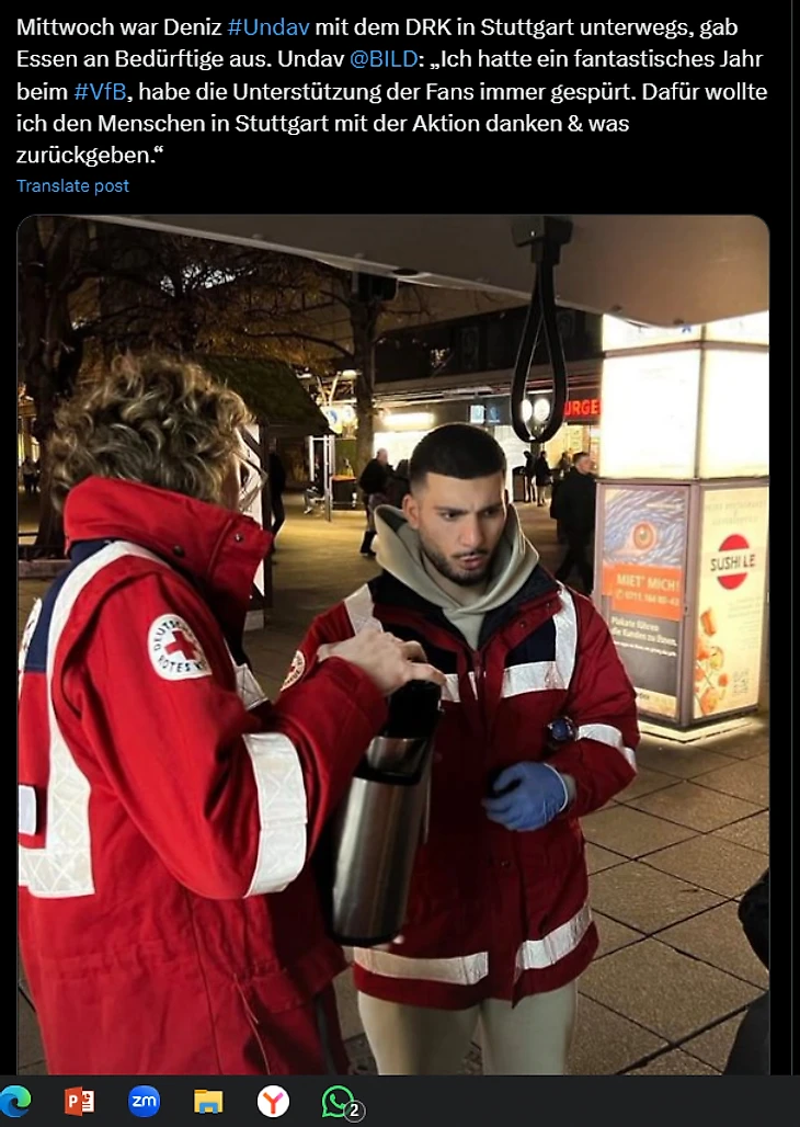 Исключением не стал и «Штутгарт». Команда и лично лидер клуба Дениз Ундав выдавали еду нуждающимся. «У меня был потрясающий год в «Штутгарте», я всегда ощущаю поддержку болельщиков, поэтому этой акцией я захотел поблагодарить людей нашего города, дав что-то взамен», – объяснял Ундав.
