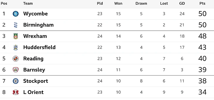 Так «Рексхэмом» был преодолен «экватор» из 23 игр сезона в Лиге 1, в среднем команда набирала фантастические 2.7 очка в домашних матчах и гораздо более скромные 1.3 на выезде. Во второй части предстоит сыграть 13 выездных игр и 10 домашних, поэтому очевидно что будет непросто удержаться в зоне прямого повышения в классе(топ 2) без улучшения результатов в гостях.