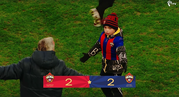 ЦСКА организовал особенный новогодний матч на «ВЭБ Арене»: 158 юных футболистов из академии против игроков основы – Владислава Торопа, Матвея Лукина, Виллиана Роши, Данила Кругового и Аббоса Файзуллаева.