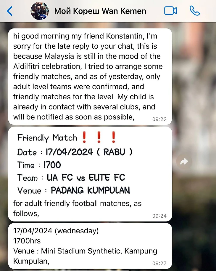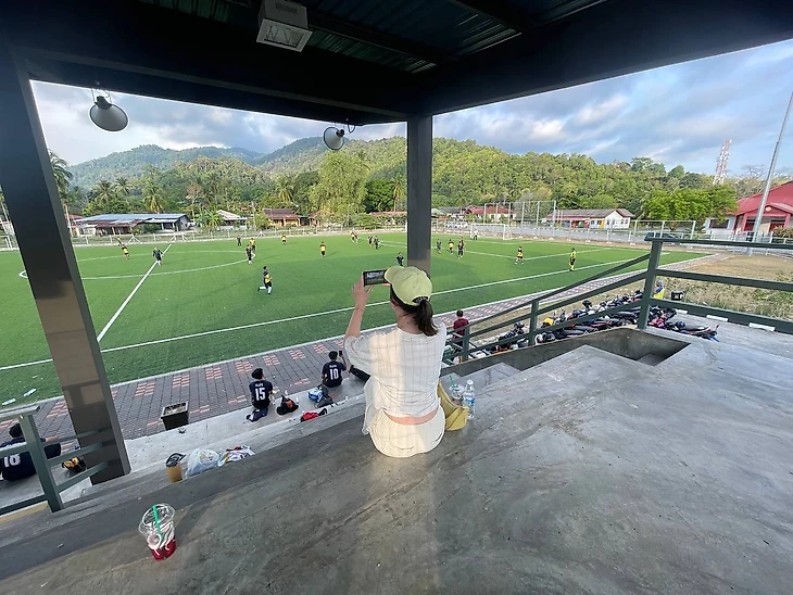 Затем мы переехали на остров Лангкави, там уже полтора года отсутствуют профессиональные футбольные команды, так что перспективы были не очень радужные. Мы начали писать в фейсбуке, инсте и вотсапе примерно всем, кто слышал слово футбол на этом острове, нашли стадион на 10 тысяч зрителей (но матчей на нем никто сейчас не проводит) и уже отчаялись, что в Малайзии на футболе не окажемся. Но в итоге один из людей ответил и дал номер друга, который как-то связан с футболом на острове.