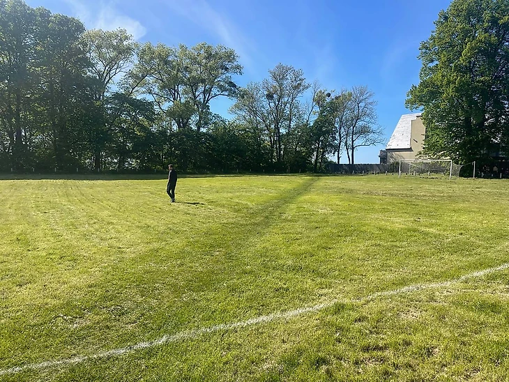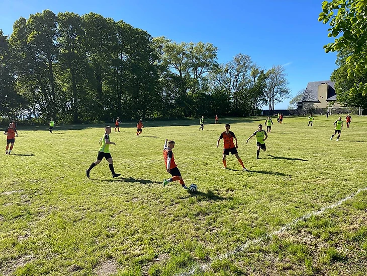 Матч провели на живописном стадионе с классным видом. Обстановка была очень приятная, но иногда серьезность матча подвергалась сомнению: например, в какой-то момент на замену вышел чей-то батя не в форме, а в обычных спортивках. Не очень позаботились и о расцветках: темно-зеленые играли против черно-желтых.