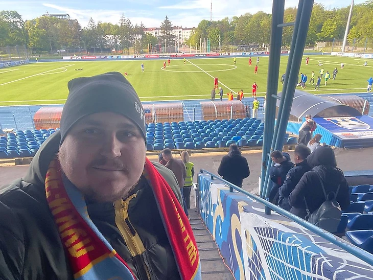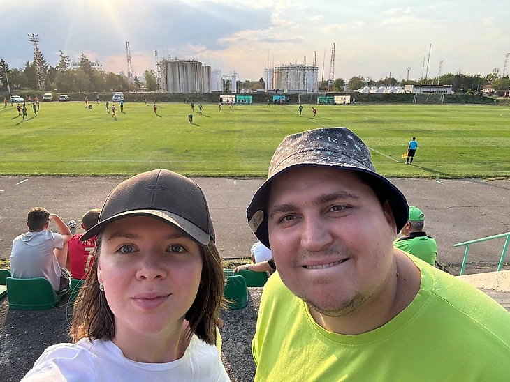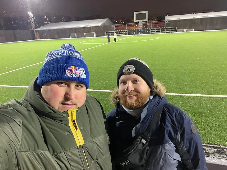Тут часто во Второй лиге играют «Звезда» и «Динамо СПб», а еще проводят игры чемпионата Санкт-Петербурга. На фото я с другом Толей, он тоже активно граундхоппит и ведет канал про низшие лиги России.