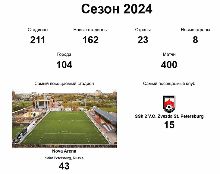 После прошлого года и 307 матчей казалось, что дальше уже некуда, но 2024-й показал, что предела нет. Причем удалось кайфовать на стадионах и получать удовольствие от каждого посещенного матча. Перенасыщения не случилось, хочется поскорее планировать новые путешествия.