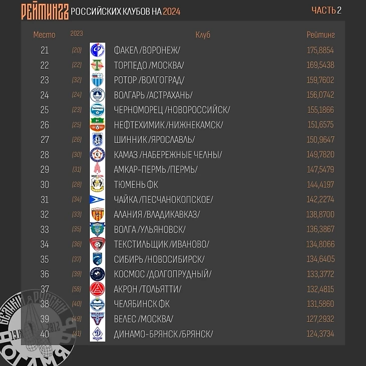 21. (20) ФАКЕЛ /ВОРОНЕЖ/ 175,8854