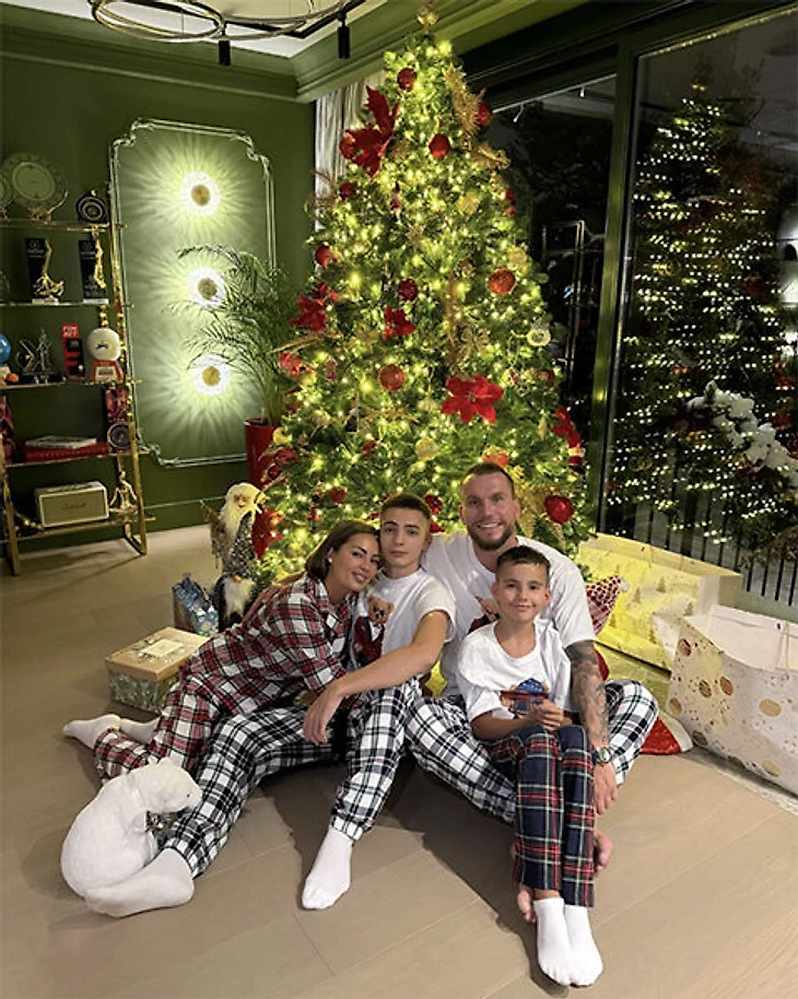 Роман Павлюченко на праздники уехал в Дубай. Но и там нашел елочку, чтобы сфотографироваться с семьей.