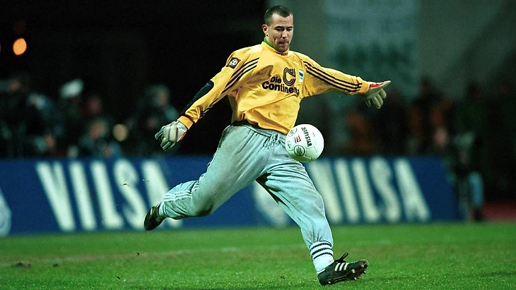 Здесь стоит поговорить и про вратарскую форму «Герты». После выхода в Бундеслигу в клубе приняли решение усилить позицию голкипера и из венгерского «Халадаша» перешел молодой Габор Кираи. На тот момент Габор уже давно выбрал быть счастливым, а не прогибаться под общество — играл в серых трениках с 1993-го года. Кажется, Adidas вряд ли был против игры Кирая в штанах, так как лишняя реклама линейки товаров никому не помешает. Кстати, после Евро-2016 и завершения карьеры голкипер открыл свой бренд, легендарные треники в наличии.