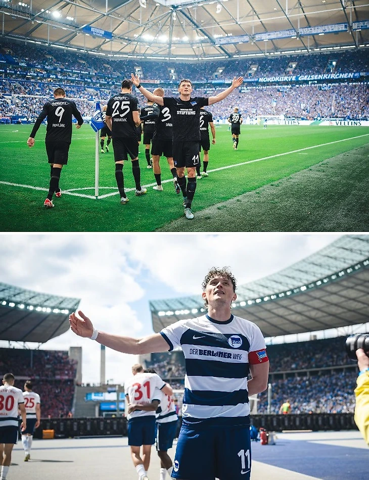 Дизайн джерси черного цвета «Schwarzer Beton» символизировал уличную культуру Берлина, поэтому шрифты так похожи на граффити. А вторая эксклюзивная форма выступила «ремейком» легендарной джерси от Adidas, в которой «Герта» завоевывала бронзу Бундеслиги и путевку в Лигу Чемпионов.