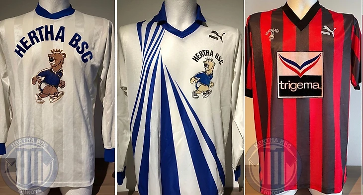 Важным событием в сотрудничестве «Герты» и компании Рудольфа Дасслера является появление традиции делать одну из форм в красных/красно-черных цветах. Это сочетание вдохновлено флагом Берлина — на нем две горизонтальные красные полосы и медведь черного цвета. Первая такая форма была заиграна в сезоне 1985/86 и она была, мягко говоря, так себе. Идею с джерси в нетрадиционных цветах развили уже Nike в XXI веке.