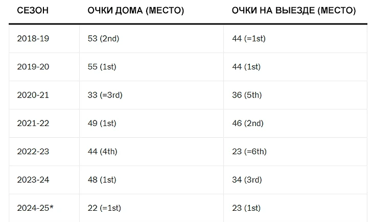 Домашняя форма «Ливерпуля», как правило, выдающаяся. Они были лучшей домашней командой в трех из последних пяти сезонов, но не возглавляли выездную «таблицу» с 2019/20 гг. В прошлом сезоне они набрали больше всего очков дома (48), выиграв 15 из 19 матчей на «Энфилде», но заняли третье место в общем зачете — на девять очков отставая от «Сити», который набрал на 10 очков больше, чем «Ливерпуль» на выезде.