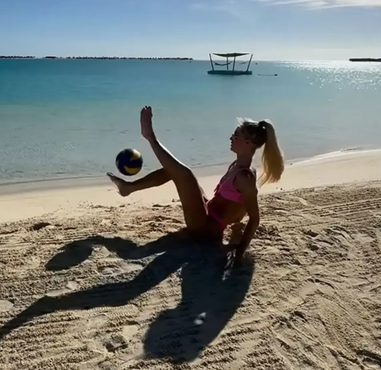 Алиша Леманн отдыхает на Мальдивах, но не забывает про футбол: девушка жонглировала мячом на пляже